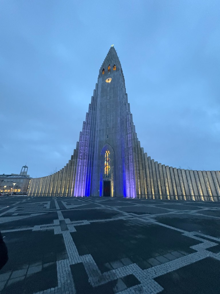 As we got onto the bus to head into Reykjavik and I checked the time, I was surprised to see that it was 7:30 am and the sun still wasn’t up. In fact, the sun didn’t end up coming out until around 8:30, well into our walking tour of Reykjavik. This was something I did not think of before coming, but it makes sense considering how far north we are.