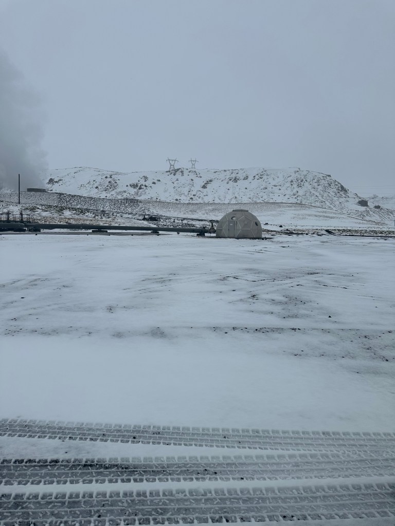 At the plant, we received an in-depth tour from an employee, David. He gave us all the background as to why geothermal energy works, why it’s so sustainable, and its drawbacks. He then went into the specifics of how their company, Orka Náttúrunnar, does their production and their outputs. Amazingly, the plant alone makes about enough electricity for every person who lives in Iceland. However, due to company use in heavy metal production, it only provides to a small group of the population. The remaining is covered by more geothermal power plants on the island and other renewable energy sources. Following the information session, David took us to a well site. The wells are used to push the used water back underground as “disposal.” We had the opportunity to inside a well and see how it works.