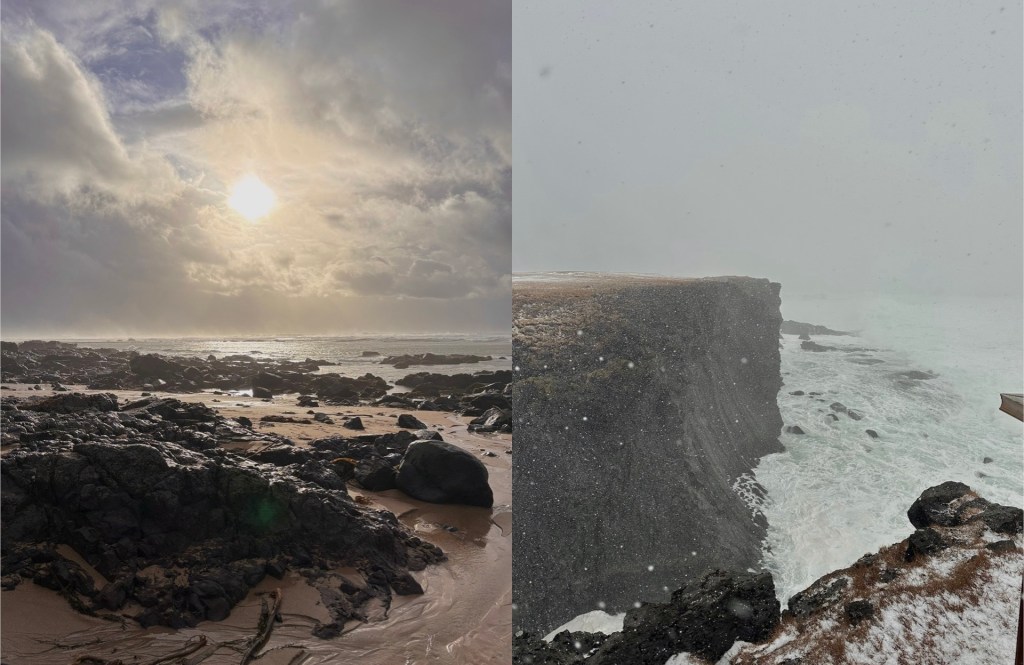 Unlike your stereotypical spring break destination, Iceland’s waters are not one to pop in for a quick dip or a tanning session. The waves are rough, temperatures freezing, and only made for sightseeing. Today’s weather reminded me of Pittsburgh as it was unpredictable and continued to switch up every 10 minutes. The weather consisted of sunny skies, hail storms, 56 mph winds, sleet & snow, cycling back to sunshine! Today felt like we have seen it all. With the amount of rain recently in Iceland, the tides were extremely high, and the water was rough. It was amazing to see how intense the waters were, it does not compare to any ocean I have seen before.
