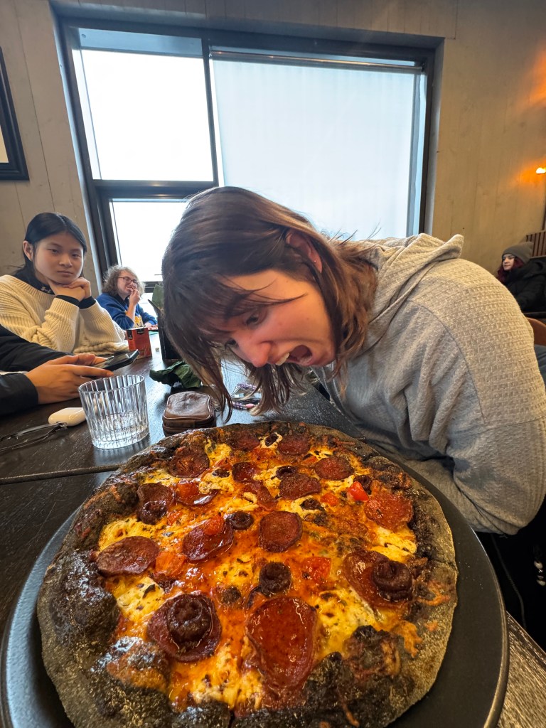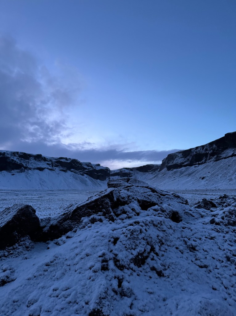 Venturing back down we took some pictures and then made our way to a glacier. The glacier was one of those sights that feels like a desktop background, or green screen not being able to fully process it unless you look at the intricate details from afar. We rounded out the day by stopping in Vik and stopping at a black crust pizzeria which was so good!