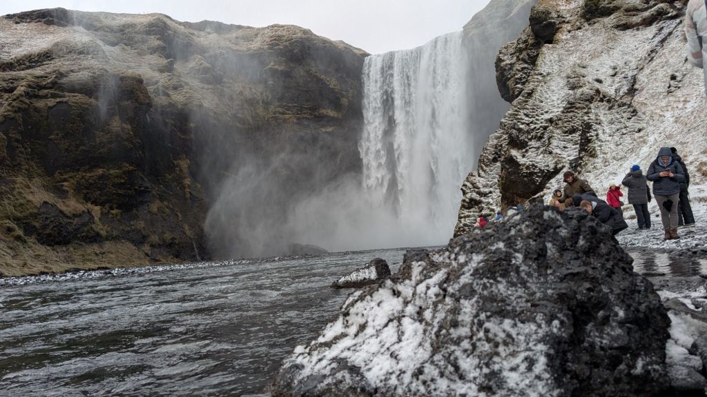 Our first stop for the day was Skógafoss. The waterfall itself was quite incredible. There was a lookout at the top which we walked around 380 steps up the hill side to get to. There’s a path after the lookout that eventually leads to a glacier. We didn’t travel far up it, but we went far enough to see a mini waterfall further up the river.