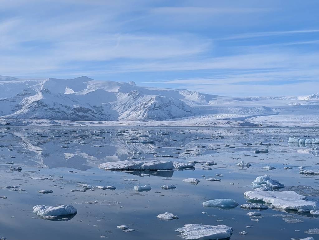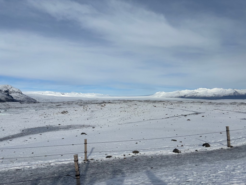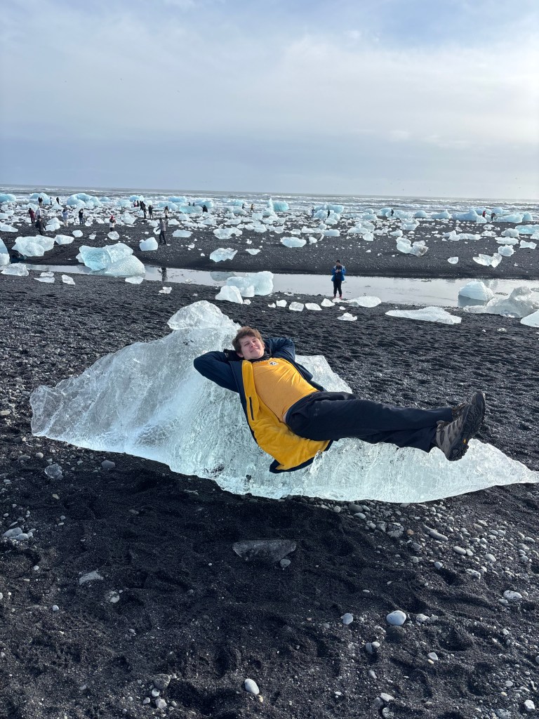Today is our fifth day in Iceland and it is still just as great as the others. Except seeing the Northern Lights. Today we saw something really weird. Our guide Olof told us it was something most people call “the Sun.” I’m not sure I can believe her on this one. Where did all the wind and snow go that has been with us since day one? Strange astronomical anomalies aside, today we got to look around the largest glacier here in Iceland and a few of its descent points. One of these was Diamond Beach, named because of all the shiny chunks of ice that wash up from the glacier onto the beach. Nature is definitely the highlight of the trip and seeing all of the mountains, cliffsides, ice floes, waterfalls, and animals is really cool. We did get to see a dozen or so seals basking on an iceberg. These icebergs are breaking off of the glacier faster than any time in history because of global warming. This recession of the glacier could cause issues because as it melts in the higher points of the mountain, it is taking pressure off of the volcanically active area. This release of pressure will increase volcanic activity, and that is not conducive to human life, so this is a problem.