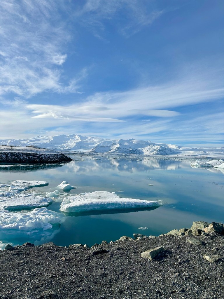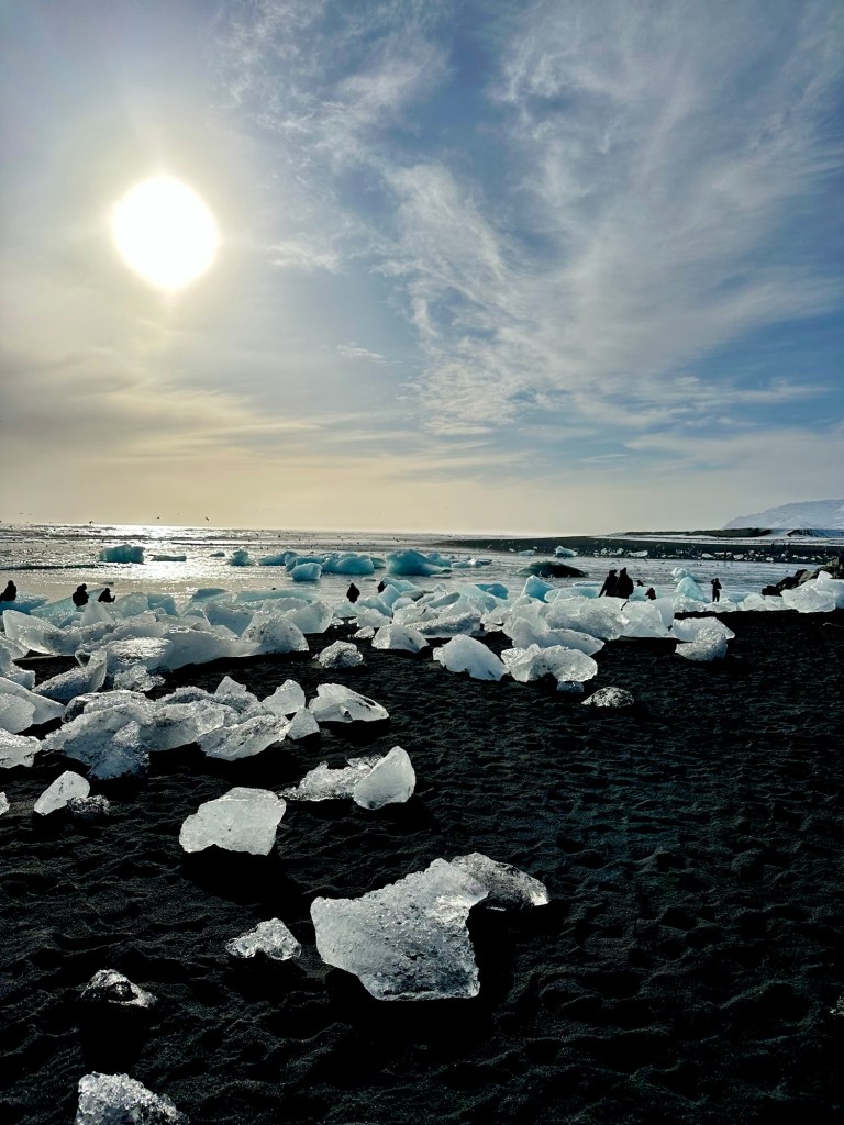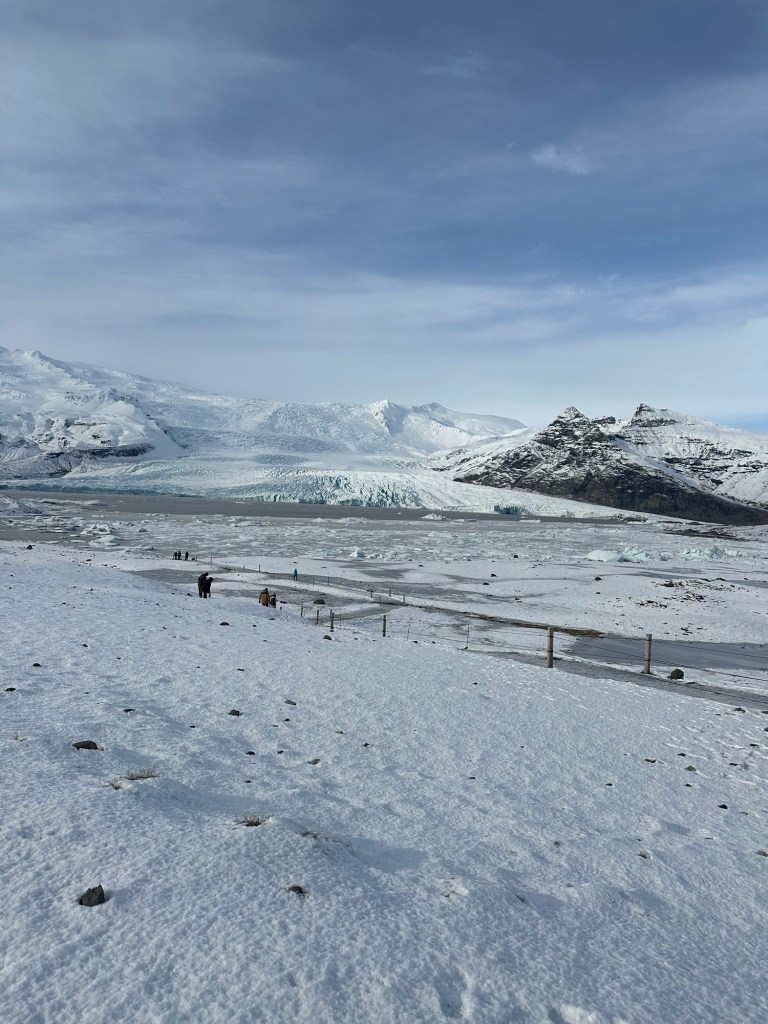 Today we traveled east in Iceland to view two glacial lagoons, Fjallsárlón and Jökulsárlón, in Vatnajökul National Park. We also visited Diamond Beach today, as well as many other tourist spots and national parks on our trip. Over the course of this trip, I have seen the most breathtaking natural sights. Our guide, Ólöf, tells us about the glacier movement and the melting of ice and its effects on the surrounding land. Additionally, we learned that tourism is Iceland’s largest industry. The conversations that accompany these beautiful natural features make me wonder about what they will look like decades from now from the consequences of global warming, natural land features, and tourism alike.