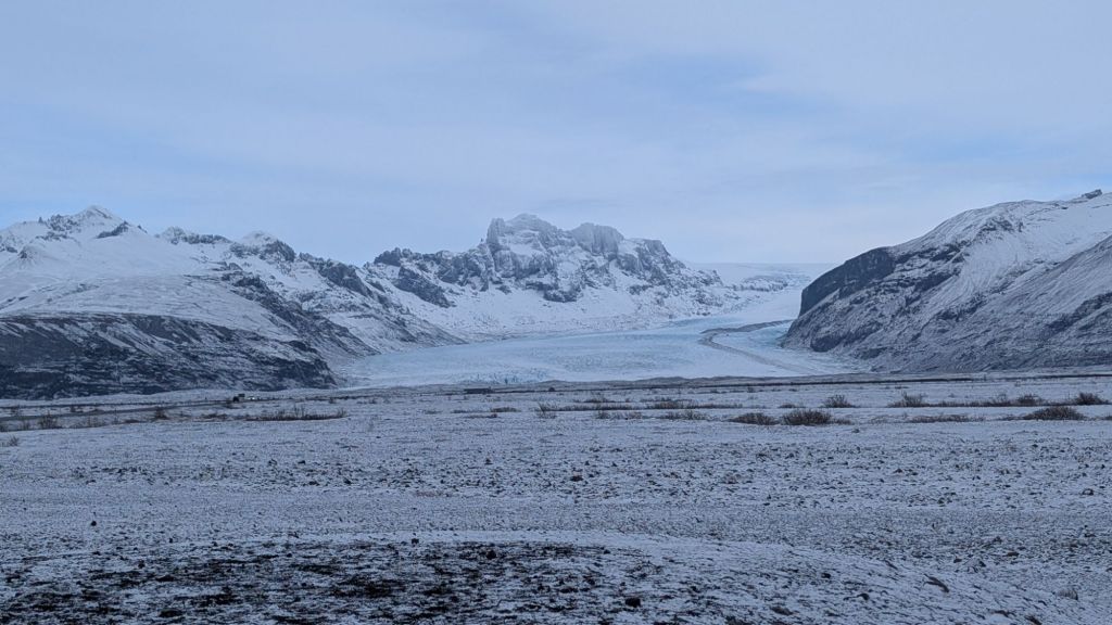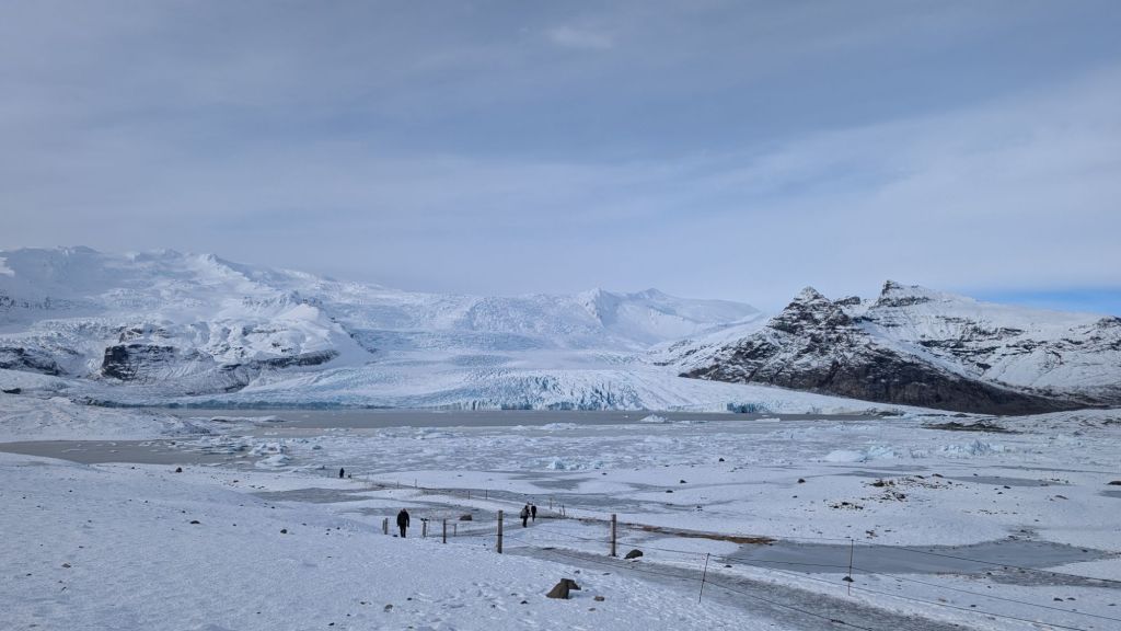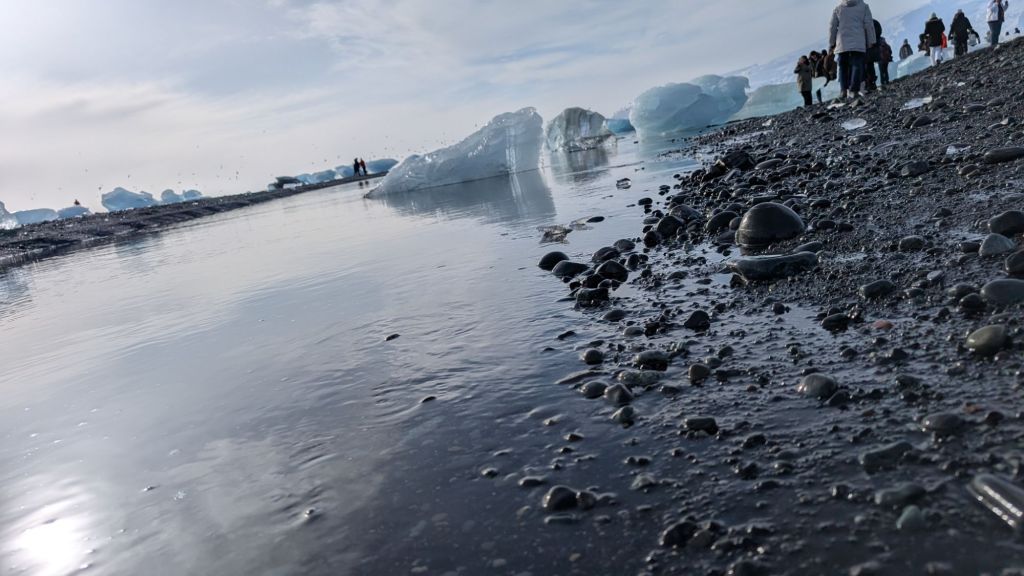 We stopped a couple more times at a couple outlet glaciers and then at a broken down bridge that broke due to flooding. Finally, we made it to our main destination for the day which was Jökulsárlón. There we got to see a glacial lagoon and the diamond beach, which is referred to as so because of the chunks of ice that end up on the beach and in the water.