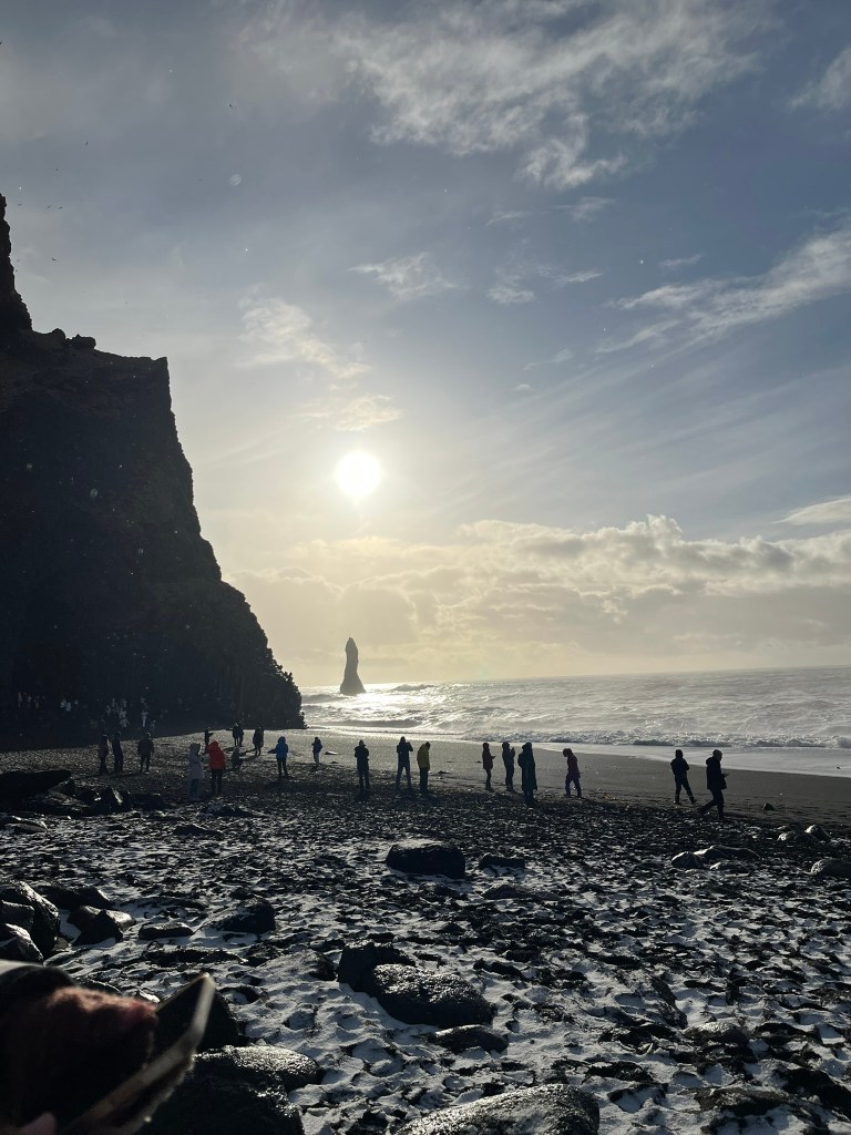 Our next stop was Reynisfjara, the famous black sand beach on the South Coast. The waves at this beach were larger than most due to the fact that the coastline quickly dropped off. In the United States, most beaches gradually slope upwards, leading to less intense swells. The sand on the beach is black due to volcanic rock that flowed into the ocean. The cooled lava was broken down over time by the powerful waves, which formed the sand.