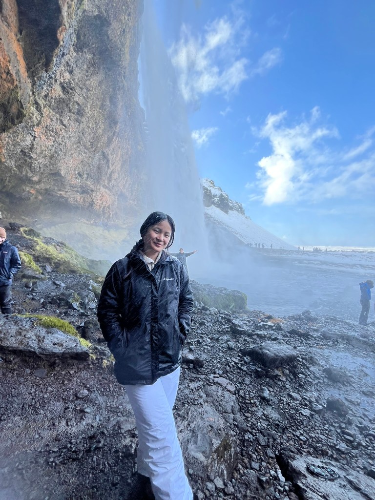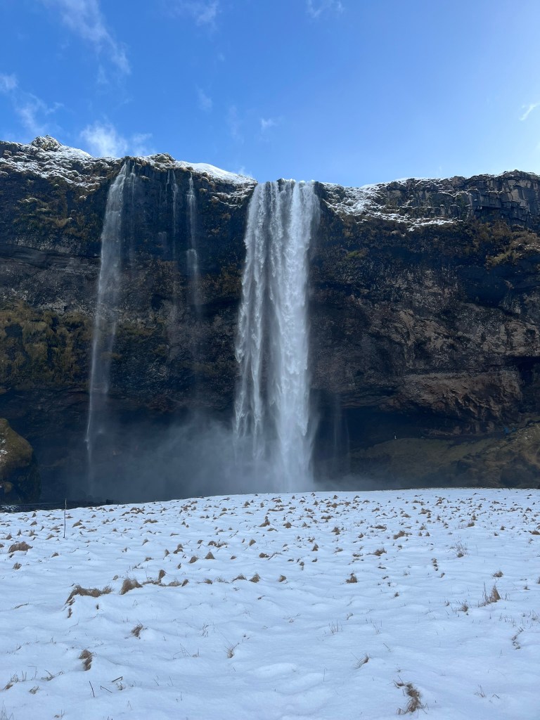 Seljalandsfoss was our next stop. This waterfall drops 60 meters and is part of the Seljalands River that originates in the volcano glacier Eyjafjallajökull. We were able to hike behind the waterfall. Thank goodness I had waterproof gear on because we got absolutely drenched.