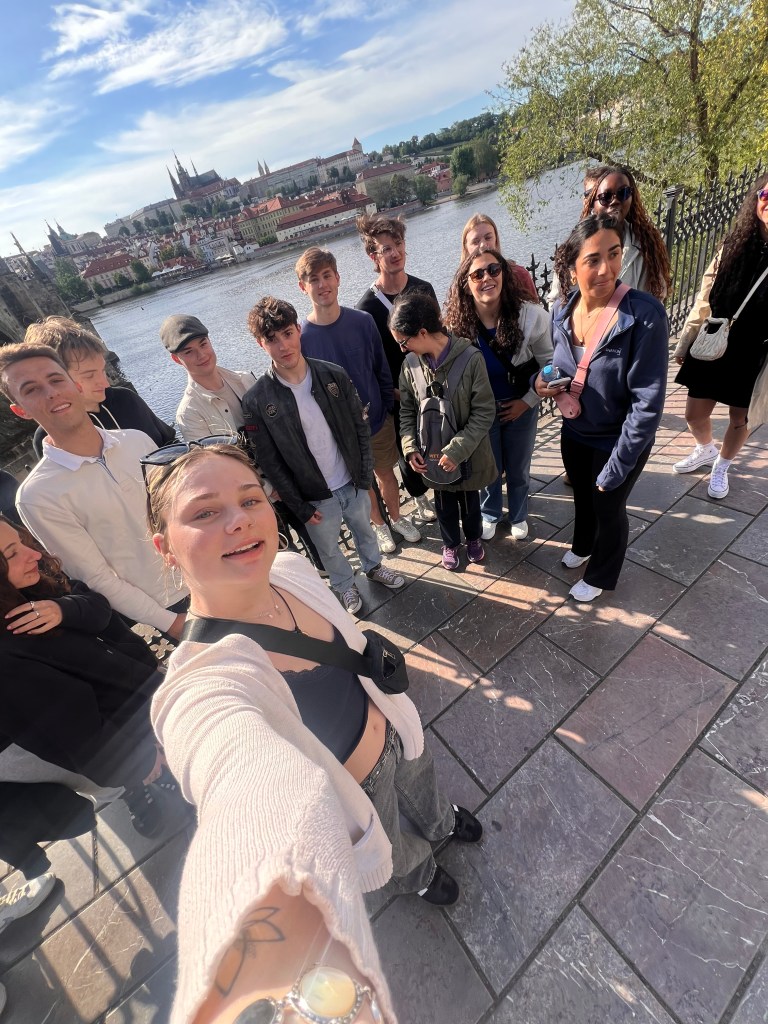 We mmade it to Prague Yay!! After getting settled into our hotel rooms Jana took us on an informative walk through this beautiful city showing us the highlights of Prague. We got to see the Astronomical tower, The powder tower (our personal landmark to get back home), and of course the Charles Bridge. Jana told us a lot about the bridge that I did not learn when researching online. My favorite things I learned was the day and time that the last foundational stone was placed is a symbolic date. 135797531 is on the sign by the bridge, and means the year 1357, july 7th, at 5:31 am. the numbers make a pyramid, which symbolizes how King Charles wanted the bridge to be built to last. Also, the statue son the front part of the bridge are symbolic to the classes. The lower level represents the common people, next the royal family, then the saints. I thought these were so interetsing to learn today, it almost personalized my perspective of the bridge in a wya that researching online was not able to.
