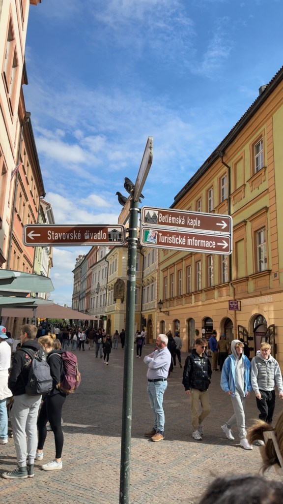 Today, after long flights and stressful layovers, we finally landed in Prague. I don’t think I will ever forget running through the Brussels airports so we didn’t miss our flight, but it was all worth it in the end. As I landed in Prague, I couldn’t help but think to myself that I had finally made it. I thoroughly enjoyed strolling through the city. Prague is so beautiful and filled with color. In addition, I had a meaningful conversation with Jana about traveling out of America. I had mentioned to her that some of my older relatives had given me pushback about traveling to the Czech Republic, as they had assumed it was dangerous, which she said was a sentiment held by a lot of Americans. Walking through Prague, I realized this was not the case at all, as Prague is just a normal city, and she mentioned the Czech Republic is considered a safer country than the US. I realized that this is what the entire trip is about: challenging our preconceived notions and realizing the beauty of a new place. On this trip, I want to keep an open mind and embrace new experiences, and I can’t wait to have these experiences!