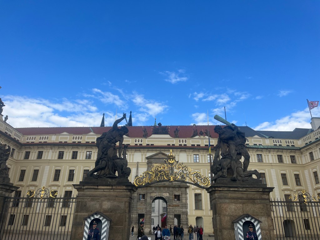 On today’s journey to the Prague Castle, I had the opportunity to witness engineering marvels that have stood the test of time since 880 A.D. While certain buildings may have been reduced to foundations, others stand mighty as architectural feats that I will never forget. What sticks out most in my mind from this trip are the statues that adorn the gates to the castle. While I expected figures of authority to decorate the gates, I was not expecting the violence and brutality of the statues on the border of the castle.