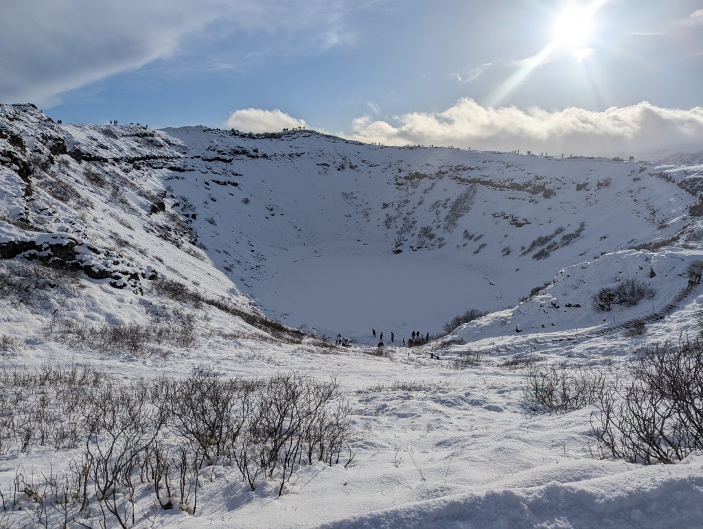 After getting a break from the blizzard and having a quick bagged lunch, we set out to go to go try some geothermally baked bread, which was excellent. From there, we made a stop at a dairy farm and had some ice cream, before ending off the attractions at the Kerið Crater due to the great weather.