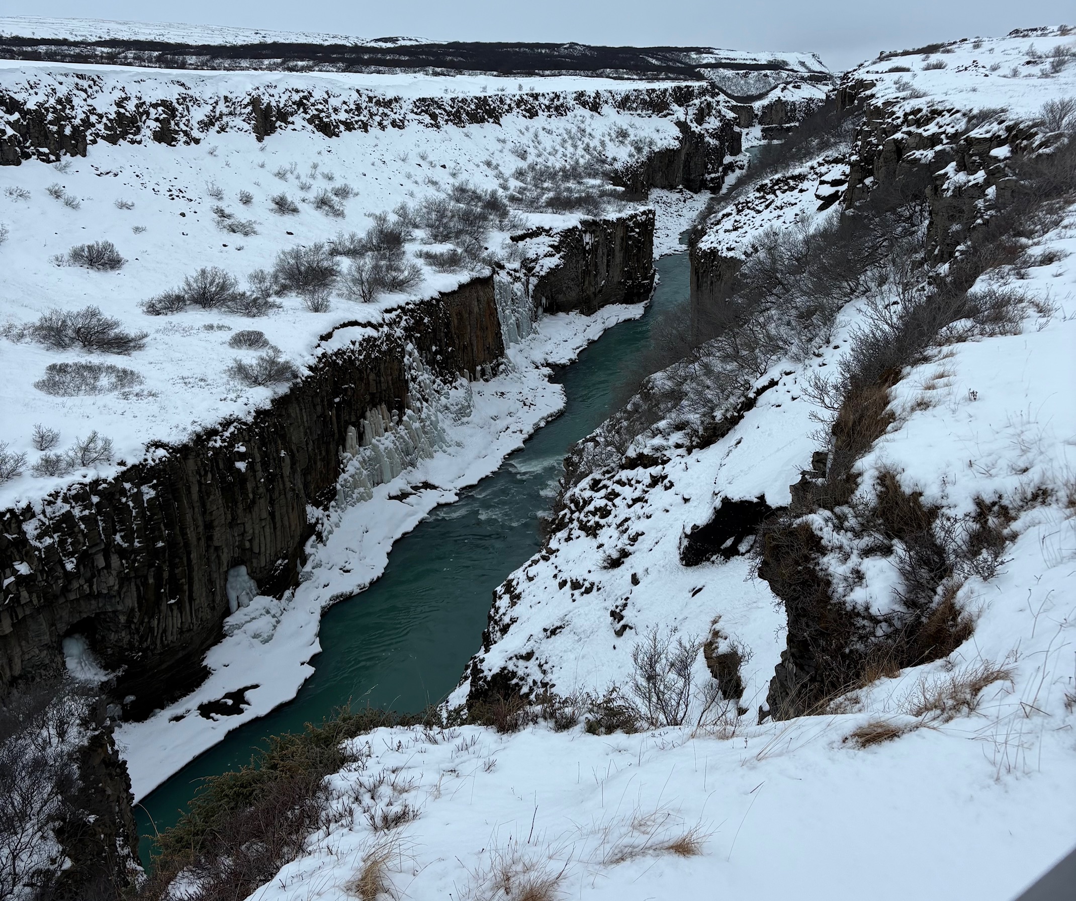 Our final stop was the Haukadalur Geothermal Area, where bubbling water stayed warm amidst the snow. My favorite sight to see there was Strokkur, a large geyser that erupts every seven to twelve minutes, though the views from the surrounding hills were just as gorgeous.