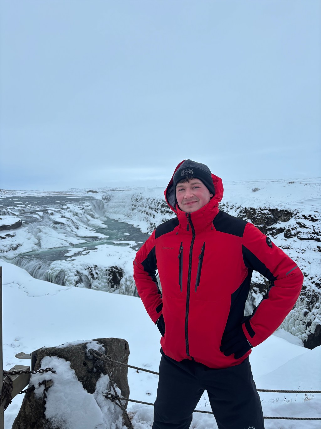 The next stop on our journey was to the Geysir Hot Spring where I got to see some boiling mud pits and a gysir in action! When the one went off, I even got blasted with some of the water, so I am definitely glad I had my waterproof coat on! After I saw the geysir I decided to hike to the top of this mountain to get a chance to see some of the surrounding views. I could have spent hours up there just taking it all in, but unfortunately we have a schedule to keep!