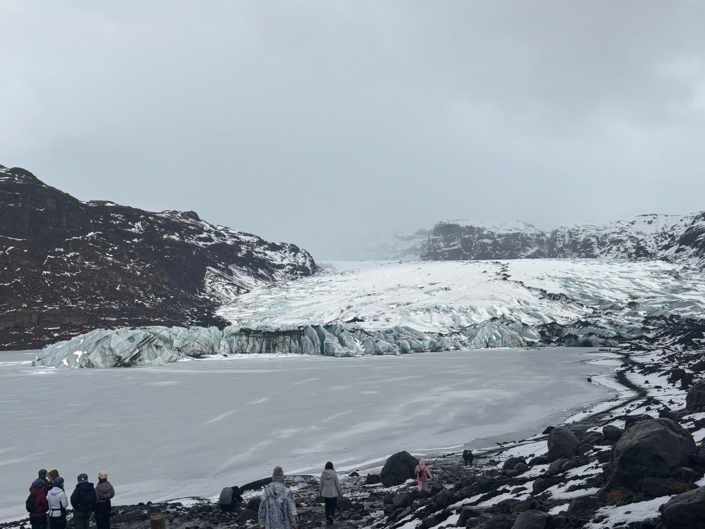 Finally we traveled to glacier and learned a little about how these glaciers are formed and the volcano below. We then finally made a pit stop in Vik for an Icelandic hot dog and a trip to the black sand beach