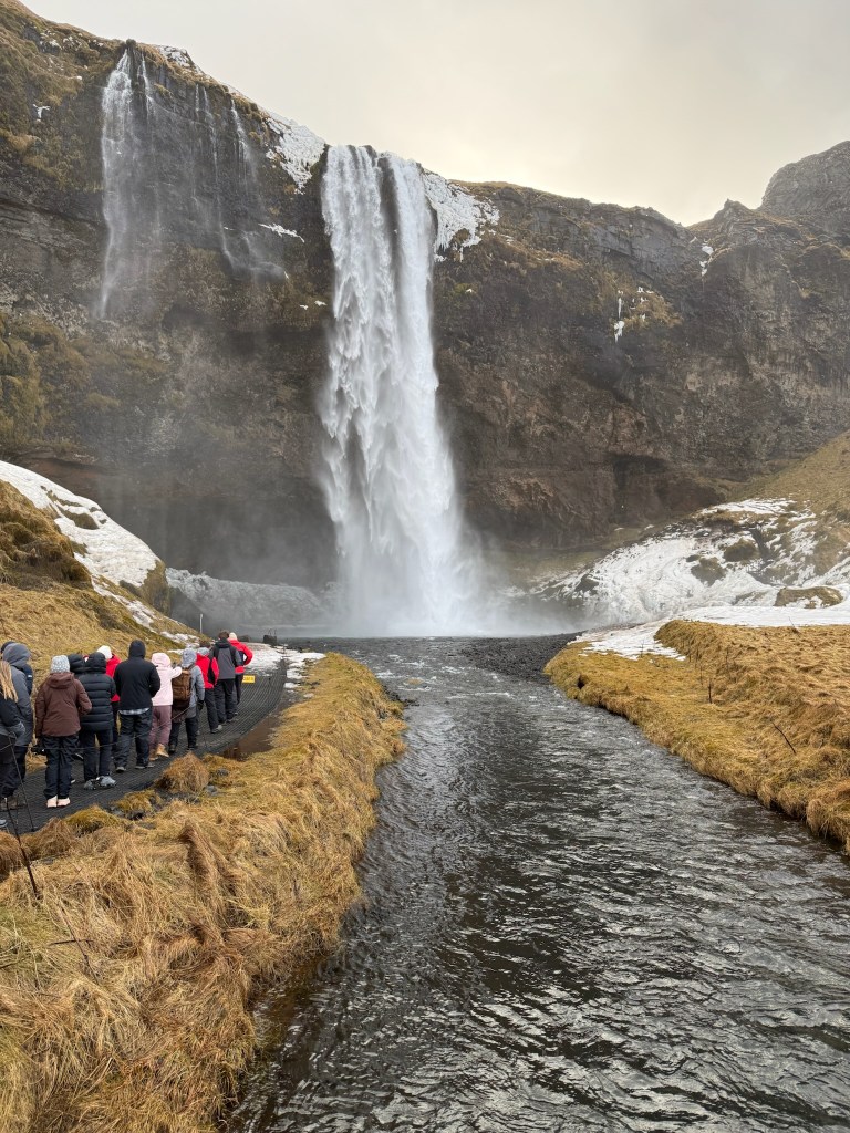 Day 4 started with getting breakfast at Hotel Ork. At 8:30 we got on the bus and headed to Seljalandsfoss. At Seljalandsfoss, we spent a hour observing and exploring the waterfalls. We got many good pictures and had to rush around many tourists.