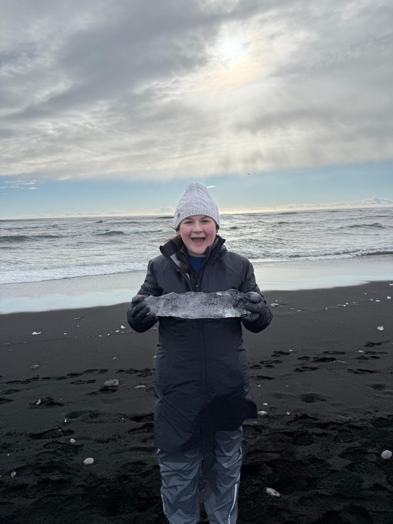 Just across the road was Diamond Beach, where pieces of glacier ice wash up on the black sand. Seeing the clear ice scattered across the dark sand was so beautiful and unlike anything I’ve ever seen before.