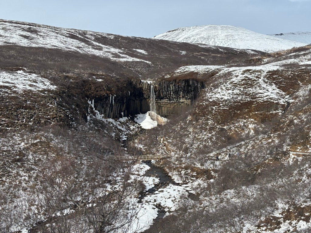 Later we hiked through Vatnajökull National Park to see Svartifoss, a waterfall surrounded by tall basalt columns. The hike was a bit of a workout, but the unique rock formations around the waterfall made the climb worth it.