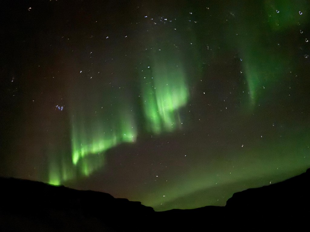 Last night we got to see the northern lights (finally!!!). After a few nights of hoping the clouds would clear, they actually appeared. Green streaks slowly moved across the sky and it honestly was crazy to experience in person.