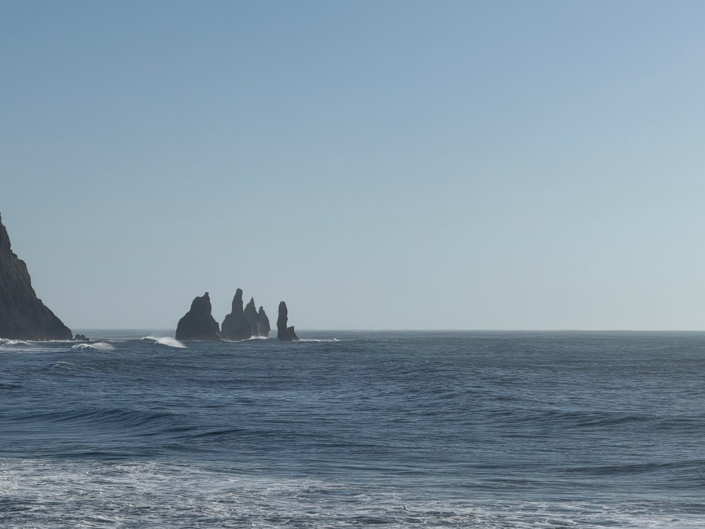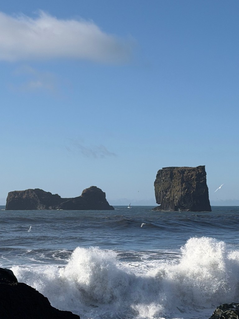 The next morning we were back on the road again. Our first stop was the viewpoint overlooking Reynisfjara Beach. From above we could watch the massive waves crashing into the black sand shoreline. The ocean there is intense, and even from the viewpoint you can see how strong the currents are.