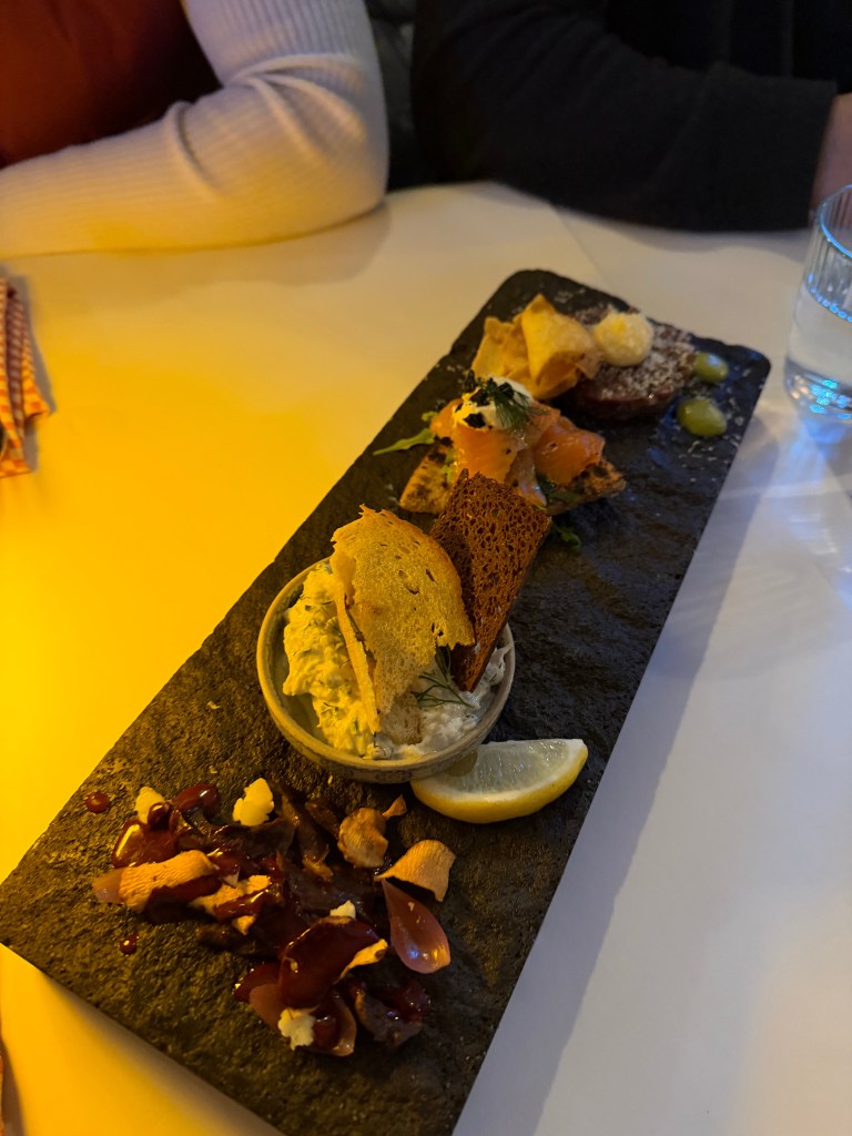 After the power plant we headed toward Reykjavik, where Olof showed us some of the sights around the city. We ended the day with dinner at a restaurant that had the cutest aesthetic. The meal was definitely adventurous. We tried horse tartar (which ended up being my favorite) and puffin as well. It was fun getting to try foods that are unique to Iceland.