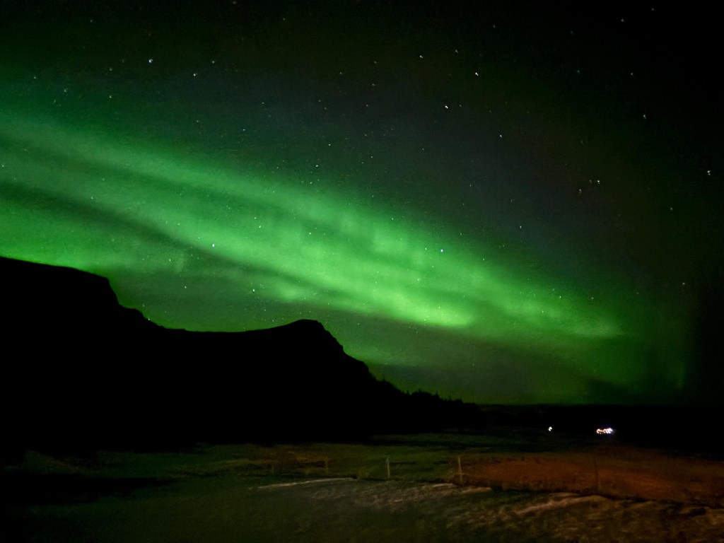 Late last night ended up being one of the most memorable moments of the trip. We were able to see the northern lights, which was something I had always hoped to experience. I originally thought they would be like shooting stars—something that appears quickly and disappears after a few seconds. Instead, the lights stayed in the sky much longer than I expected, slowly moving and changing shape. Watching them stretch across the sky was honestly one of the most beautiful things I’ve ever seen.