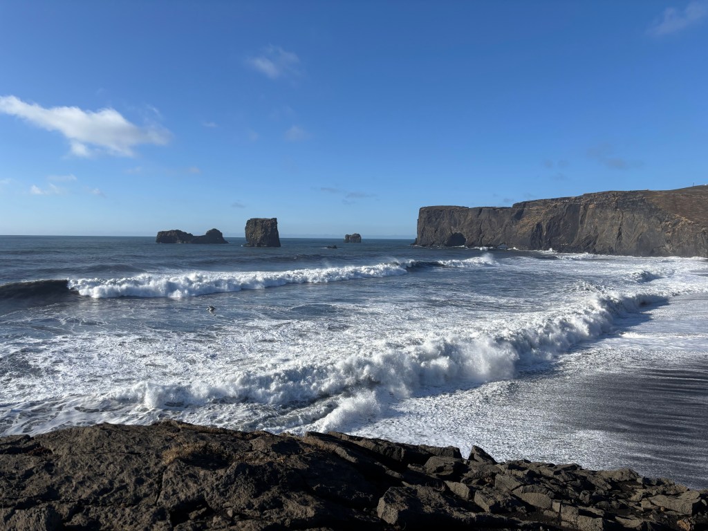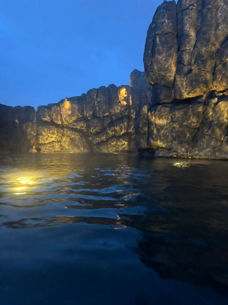To finish the day a few of us visited the Sky Lagoon, which was the perfect way to relax after a long day. The warm water felt amazing after being outside in the wind earlier. We went through their 7-step ritual, which included soaking in the warm lagoon, a cold plunge, a sauna with an ocean view, a refreshing mist, and a salt scrub that you rub on your skin before rinsing it off. We were able to see the view from the lagoon in daylight and after sunset. When it gets dark they turn on lights all throughout the pools and on the cliffs, which makes the space feel so relaxing. Sitting in the lagoon while looking out toward the ocean was a really peaceful way to end the day.