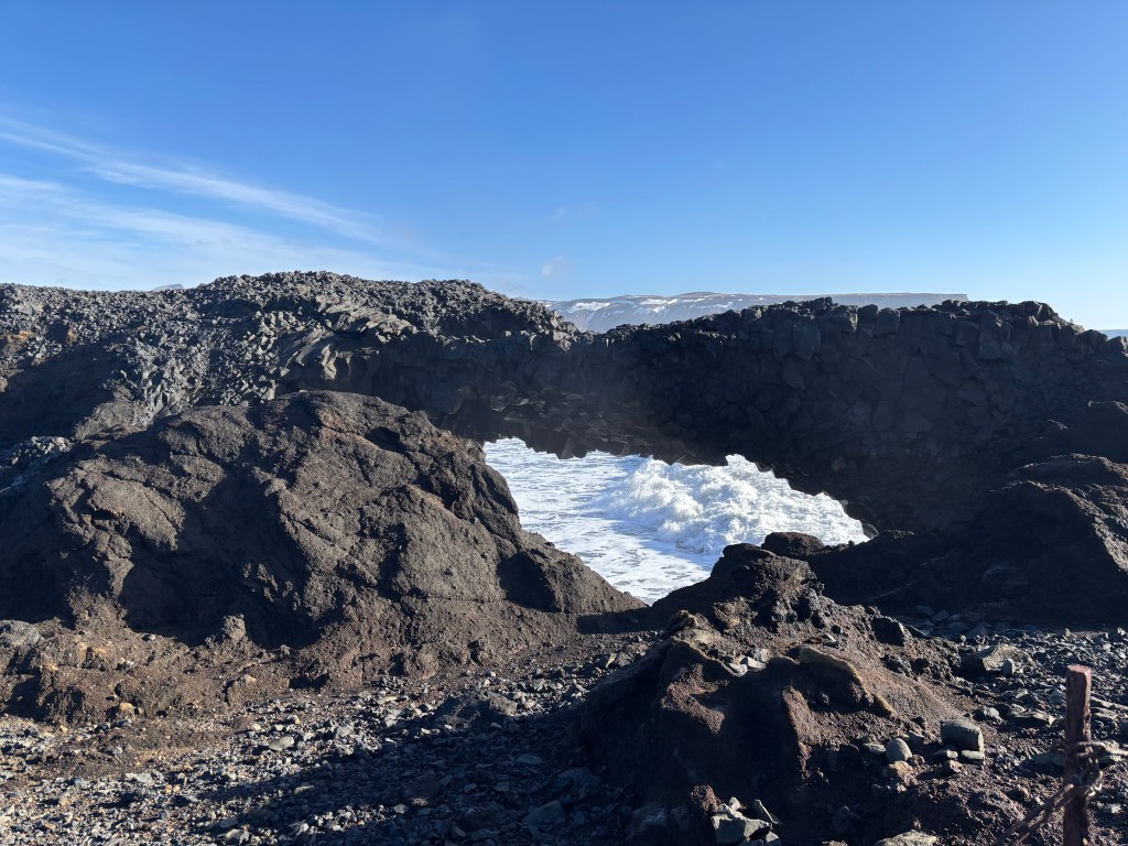 Today started with a long drive toward the ON Power geothermal power plant. Along the way we stopped at an overlook along the coast. The waves crashing against the cliffs were incredibly powerful, easily the strongest ocean waves I’ve seen in person. There was also a large hole in the side of the cliff which was very unique. Standing there and watching the waves crash into the rocks really showed how powerful the ocean is.