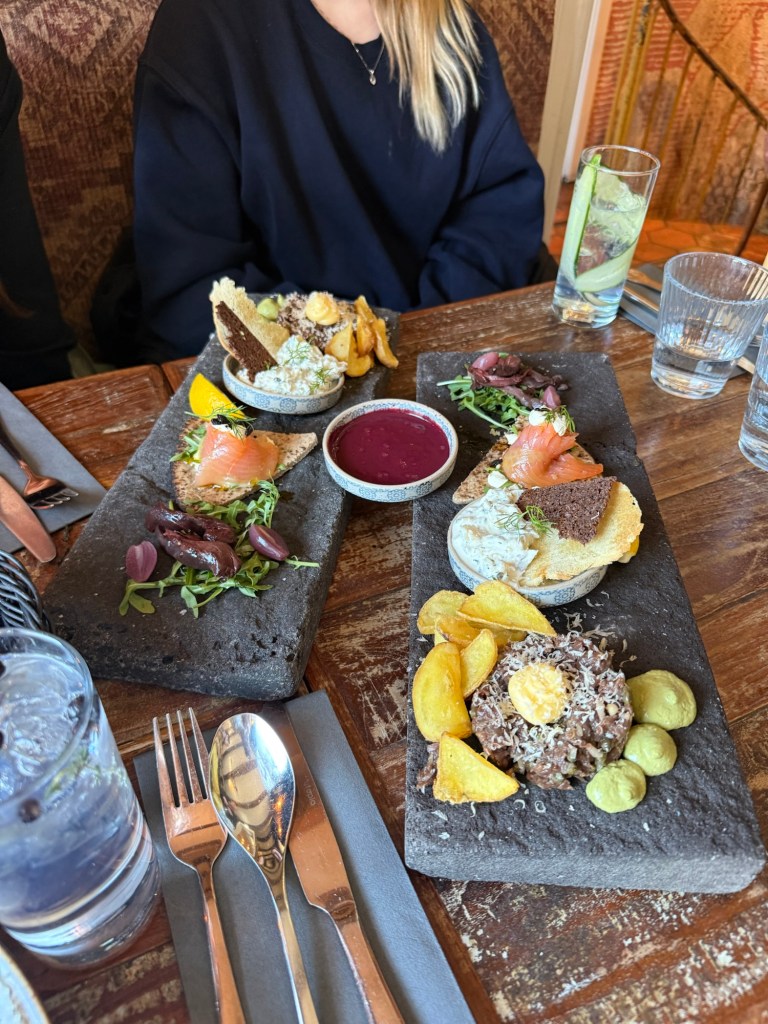 After leaving the university, we headed into the city for our Iceland tasting experience. I finally got to try puffin. It honestly was not as good as I had hoped, but I can officially check it off my bucket list now. One thing I did really enjoy though was horse tartare, which surprised me. After that we walked around the city for a while and did some shopping before stopping to see the famous church Hallgrímskirkja. It was really astonishing to see in person and there were so many people gathered around it. The architecture is very unique and it stands out over the entire city.
